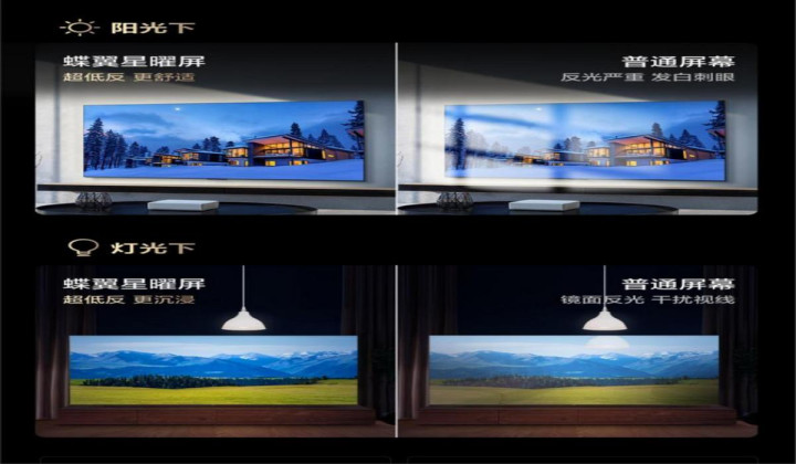 T7L Ultra作为TCL在2025年推出的新款机型,就集中体现了其在Mini LED领域的顶尖技术实力。首先是在屏幕上,TCL与苹果一样察觉到了消费者在日常使用中遇到的“反光”痛点,给这款电视配上了万元旗舰同款的顶配华星HVA屏,这块被称为蝶翼星曜屏的屏幕采用了镜面+LR低反膜的双重抗反光方案,通过屏幕外层覆盖行业领先的0.5%LR低反膜,再加上内部 89°液晶低反的协同作用,将T7L Ultra的整机反射率压低至1.8%,效果远超其他品牌的AGLR低反膜方案,反射率仅2.6%。这项技术让T7L Ultra即便身处强光环境,也不会出现泛白或者倒影让观看体验变差。