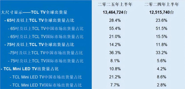 与此同时,TCL在全球Mini LED电视市场中的份额也在不断提升,在2025年上半年,TCL Mini LED电视的全球销量达到了137万台,同比增长了176.1%,并且以38.2%的市场份额稳居全球首位。