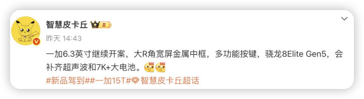 结合之前的相关爆料,一加15T的整体轮廓也算是比较清晰了,这次牙膏挤得还是挺足的